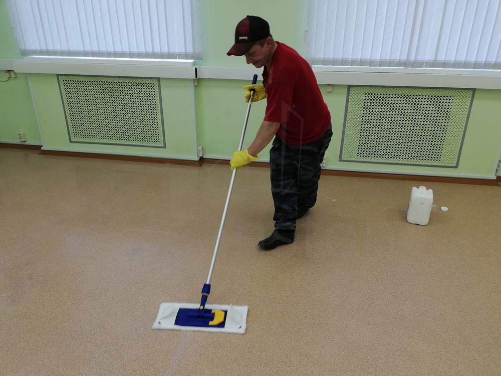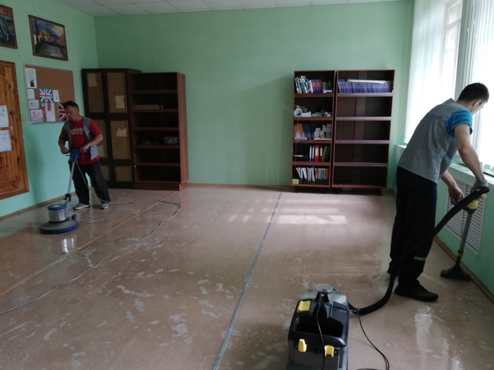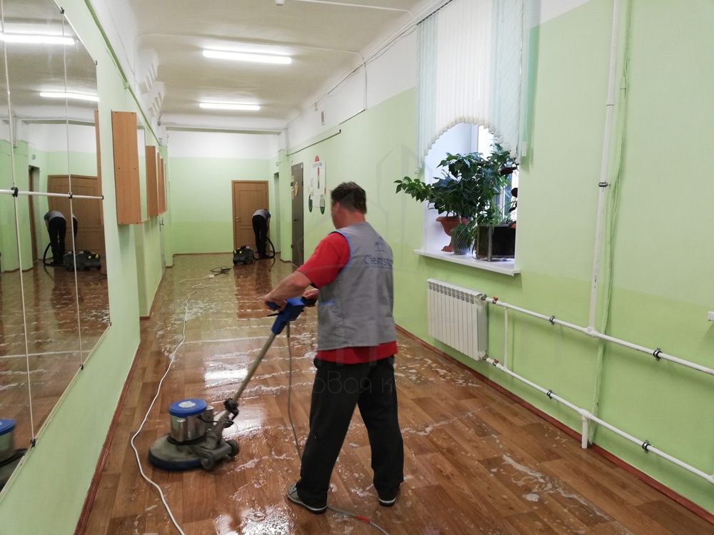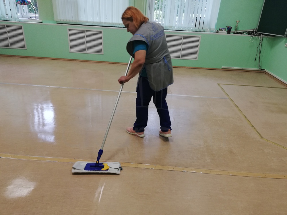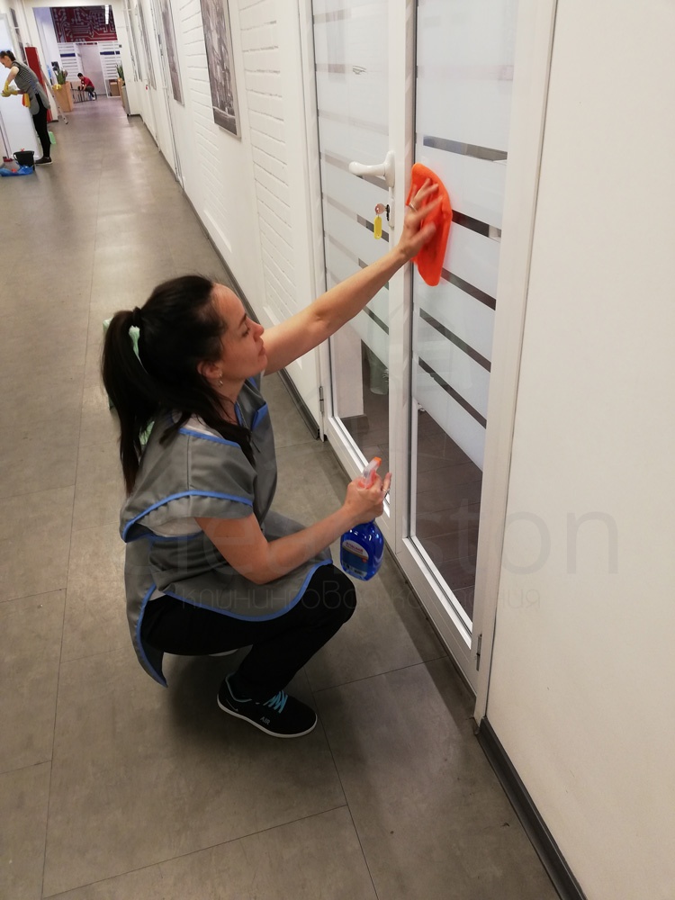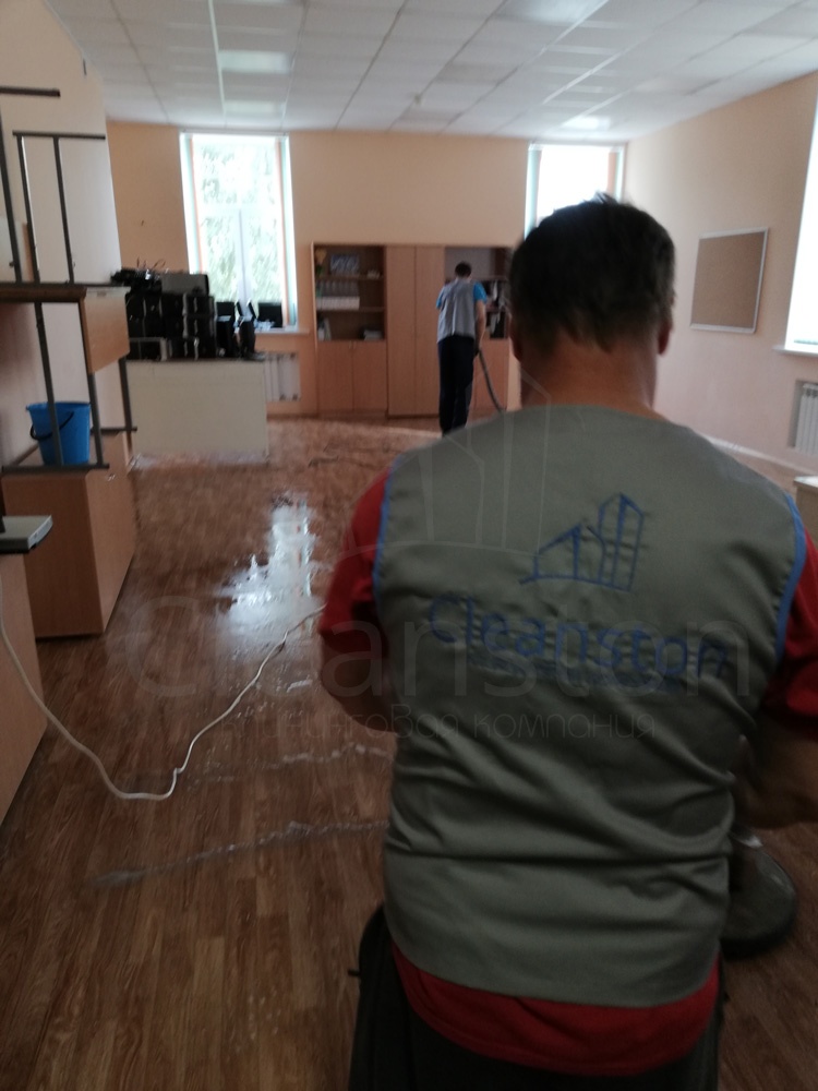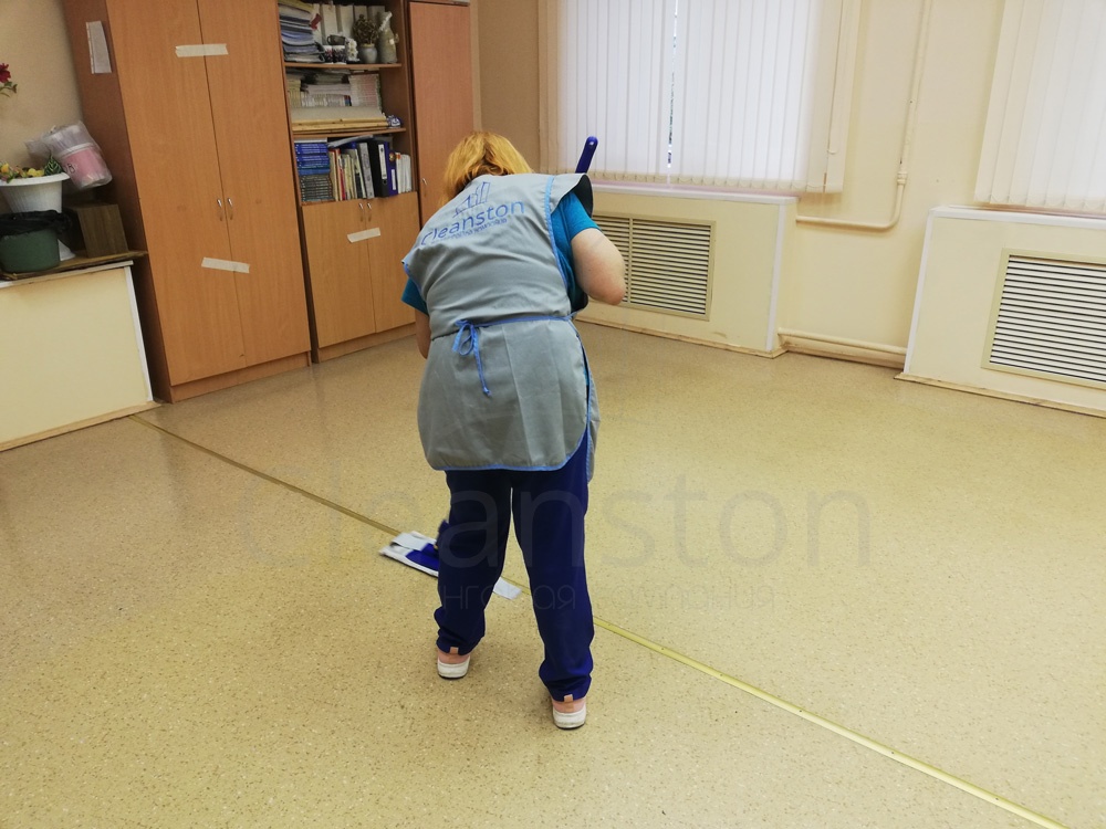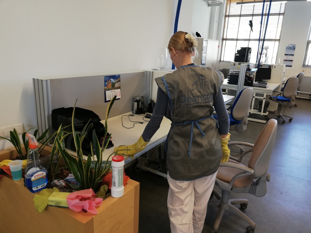 Сухая и влажная уборка пола, потолка, стен, плинтусов, обеспыливание мебели, оргтехники, предметов интерьера с внешней стороны, полировка мебели снаружи, вынос мелкого мусора, обработка стоков чистящим средством.