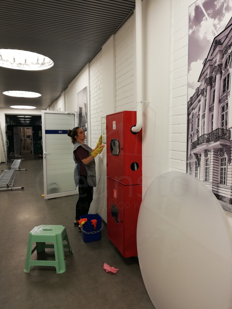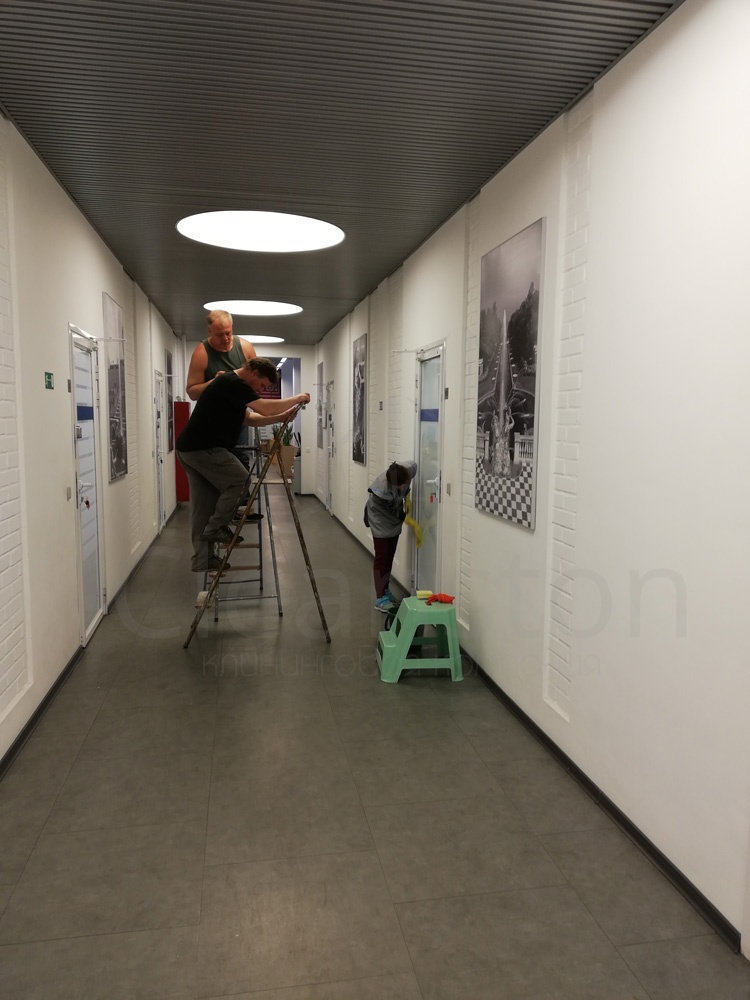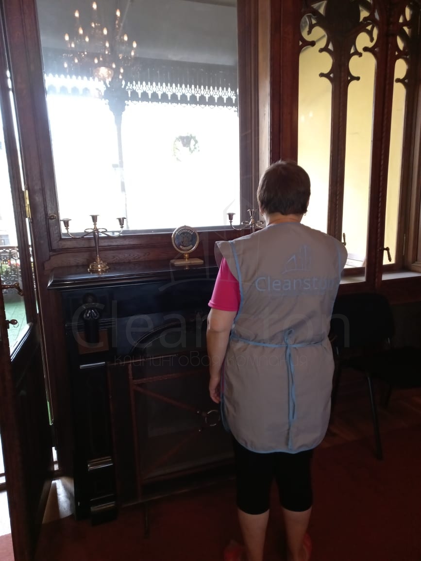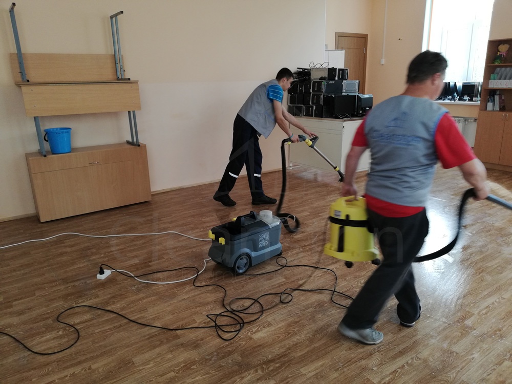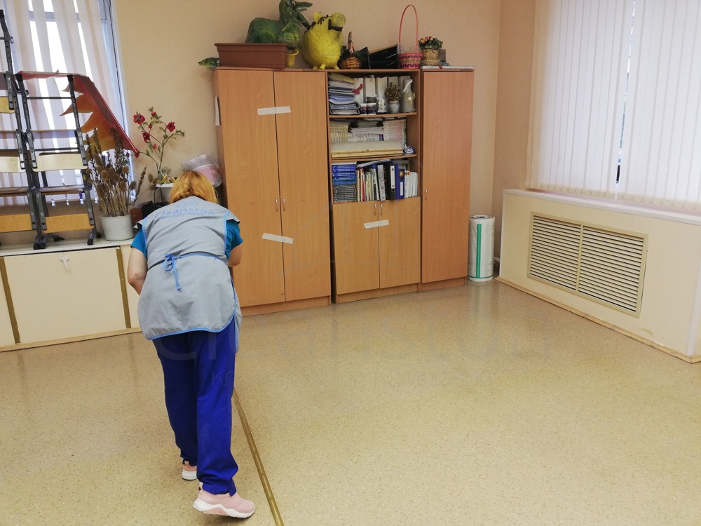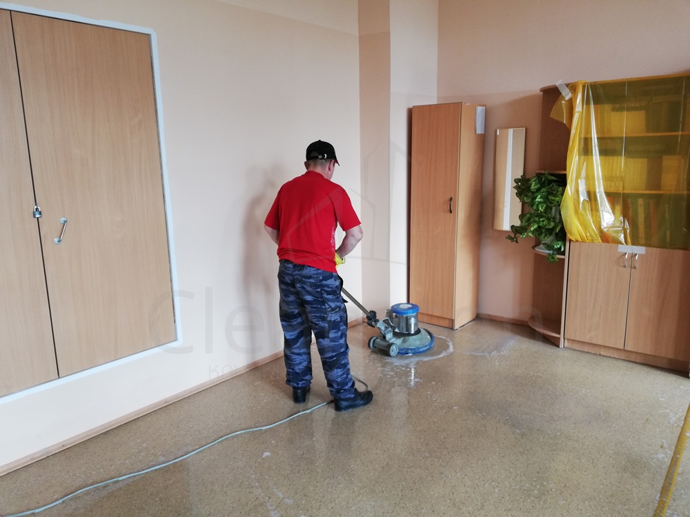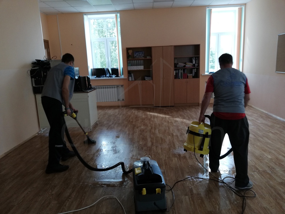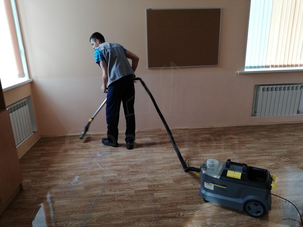 Сухая и влажная уборка пола, потолка, стен, плинтусов, обеспыливание мебели, оргтехники, предметов интерьера с внешней стороны, полировка мебели снаружи, вынос мелкого мусора, обработка стоков чистящим средством.