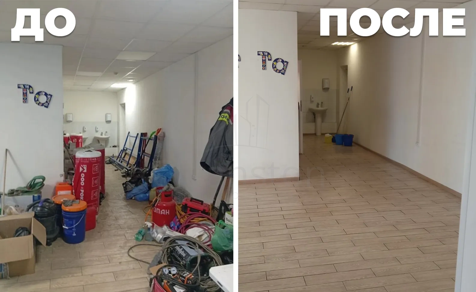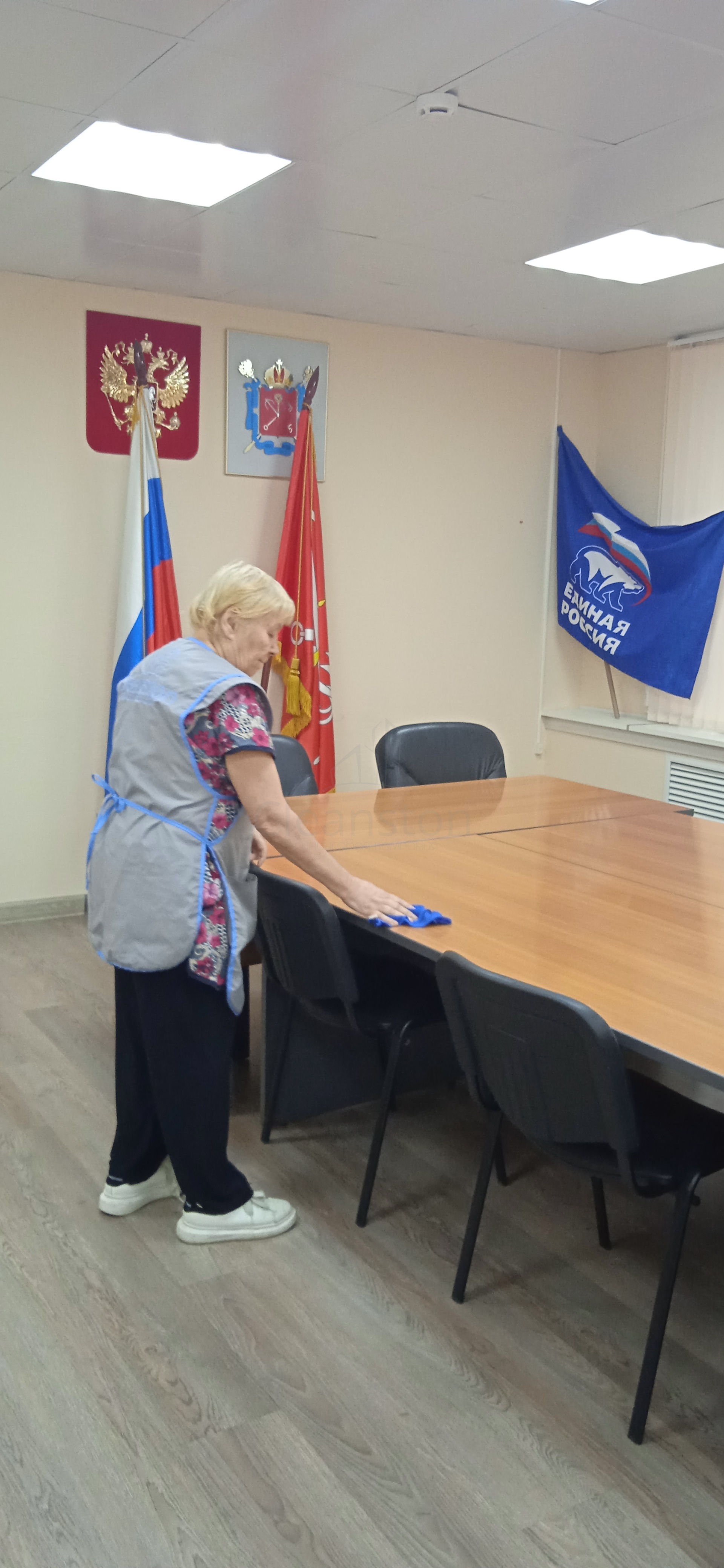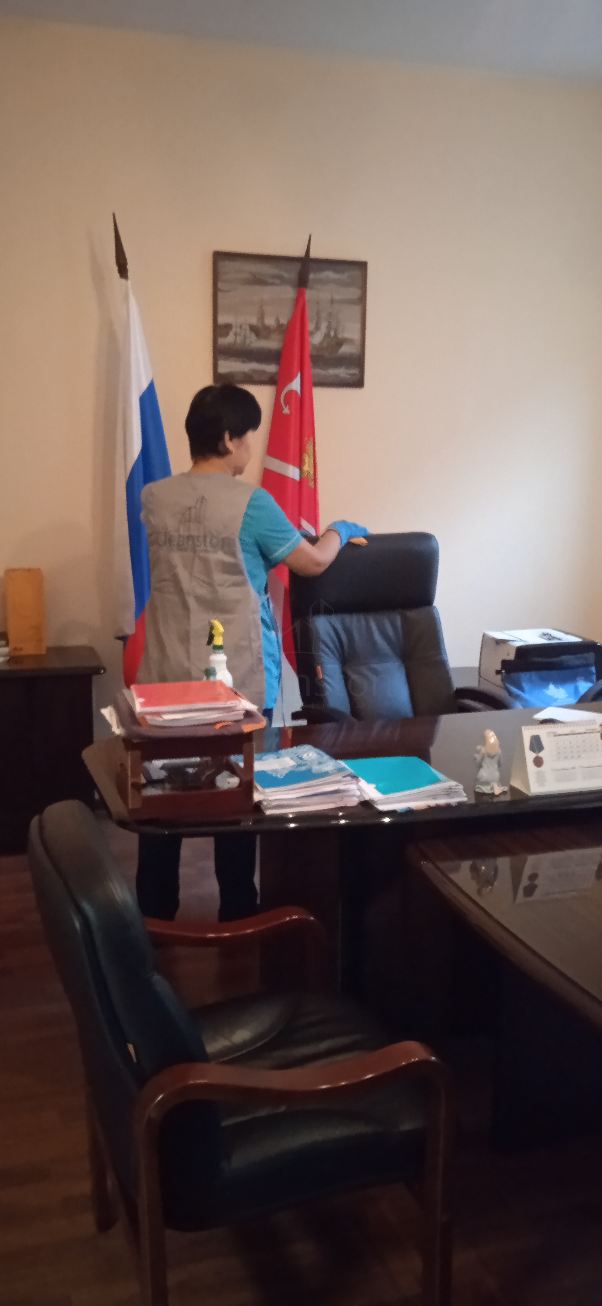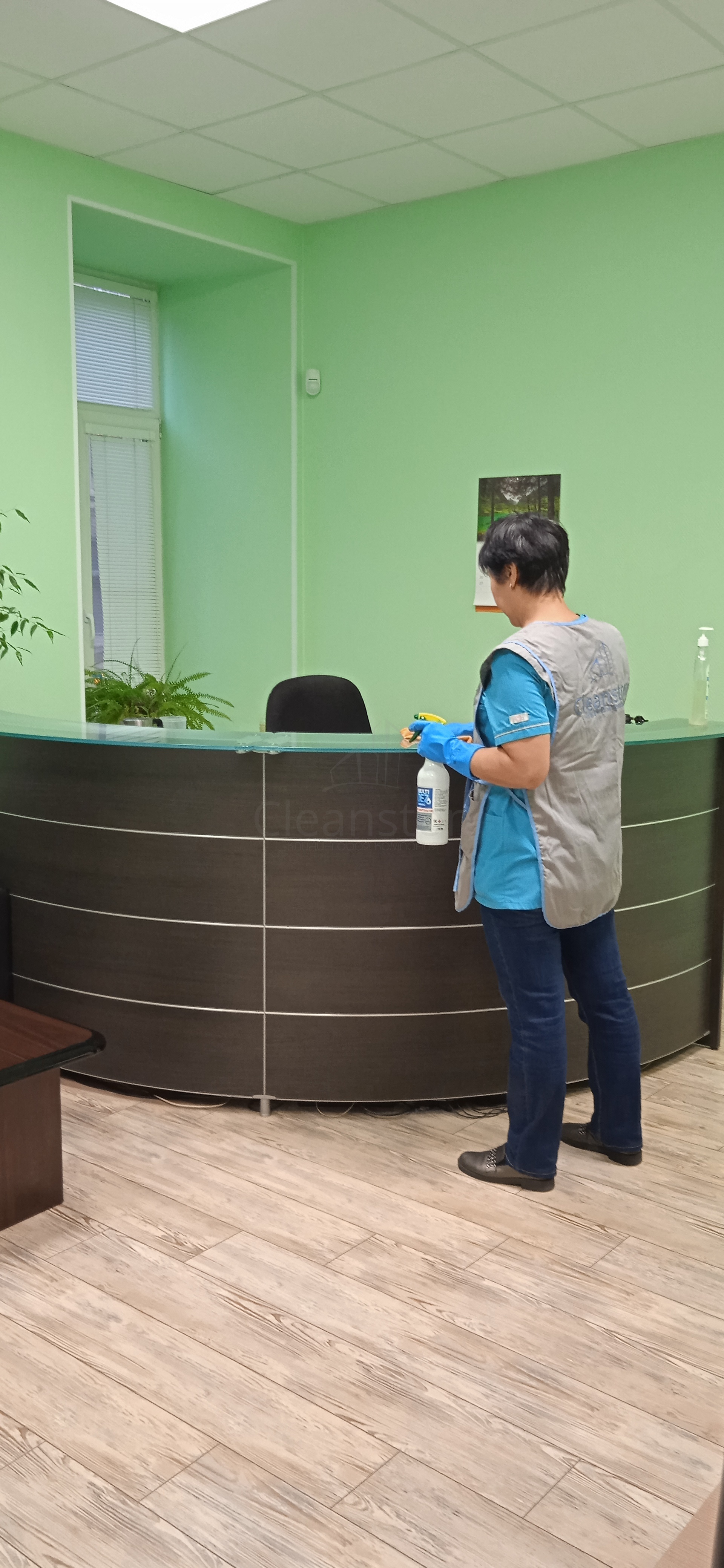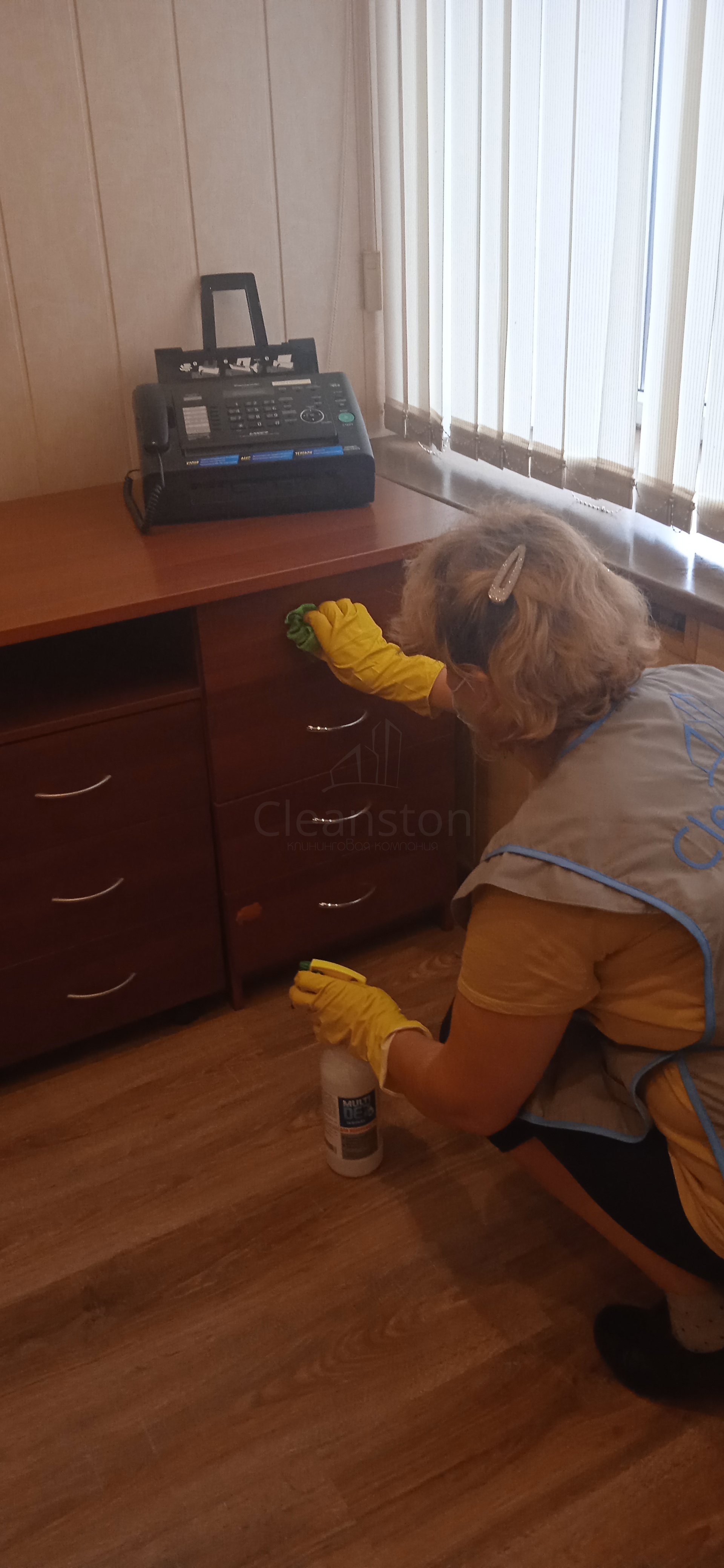 Сухая и влажная уборка пола, потолка, стен, плинтусов, обеспыливание мебели, оргтехники, предметов интерьера с внешней стороны, полировка мебели снаружи, вынос мелкого мусора, обработка стоков чистящим средством.