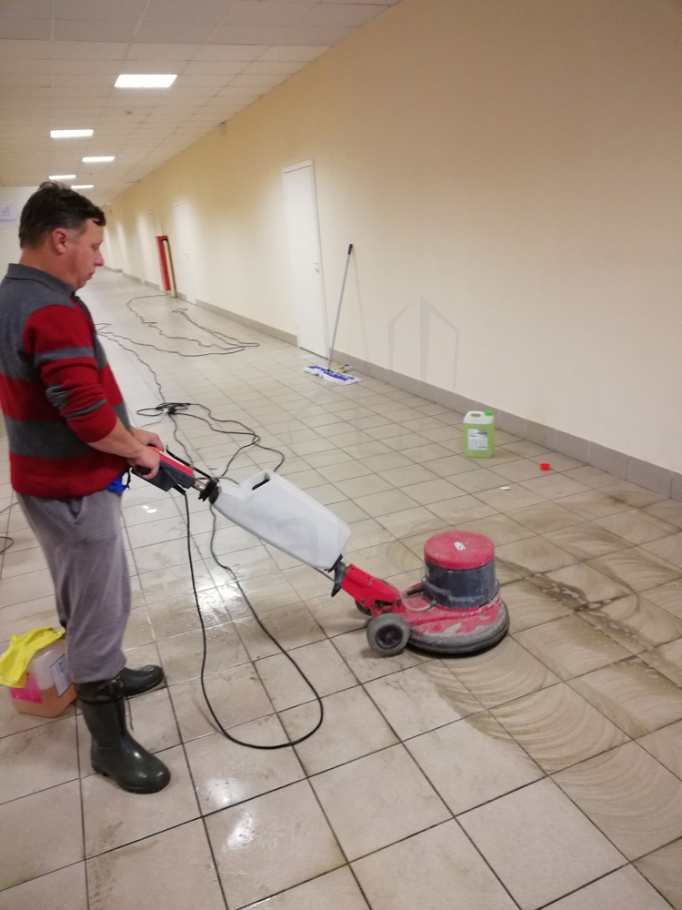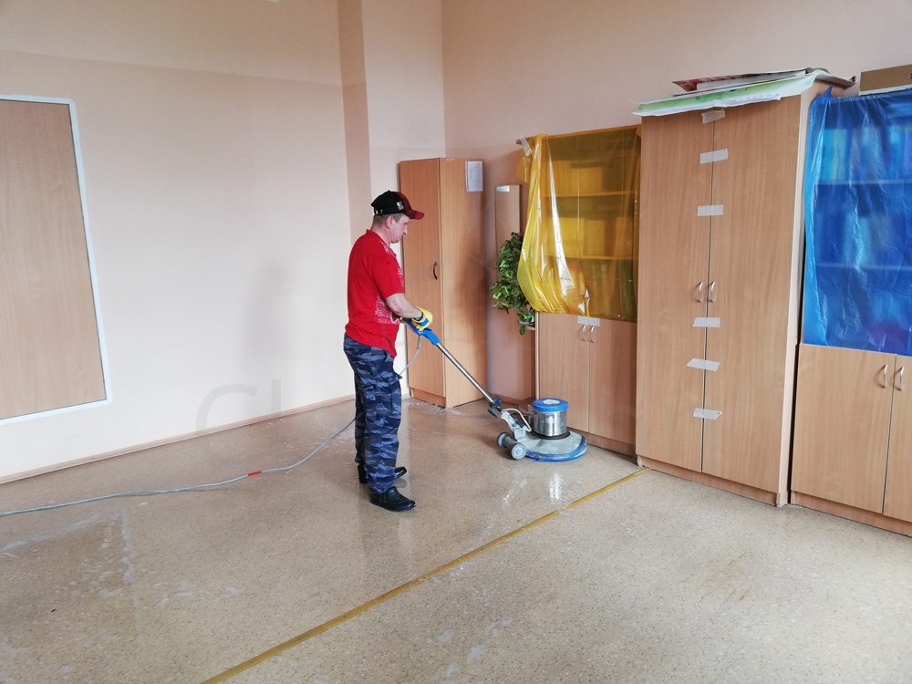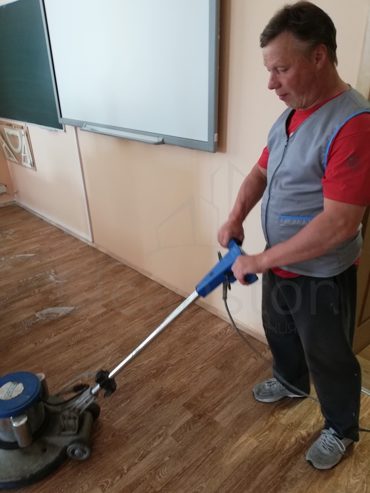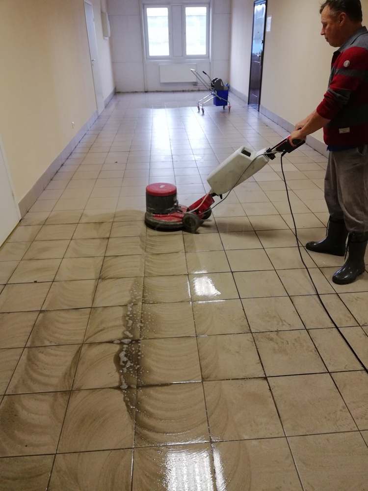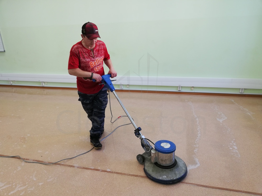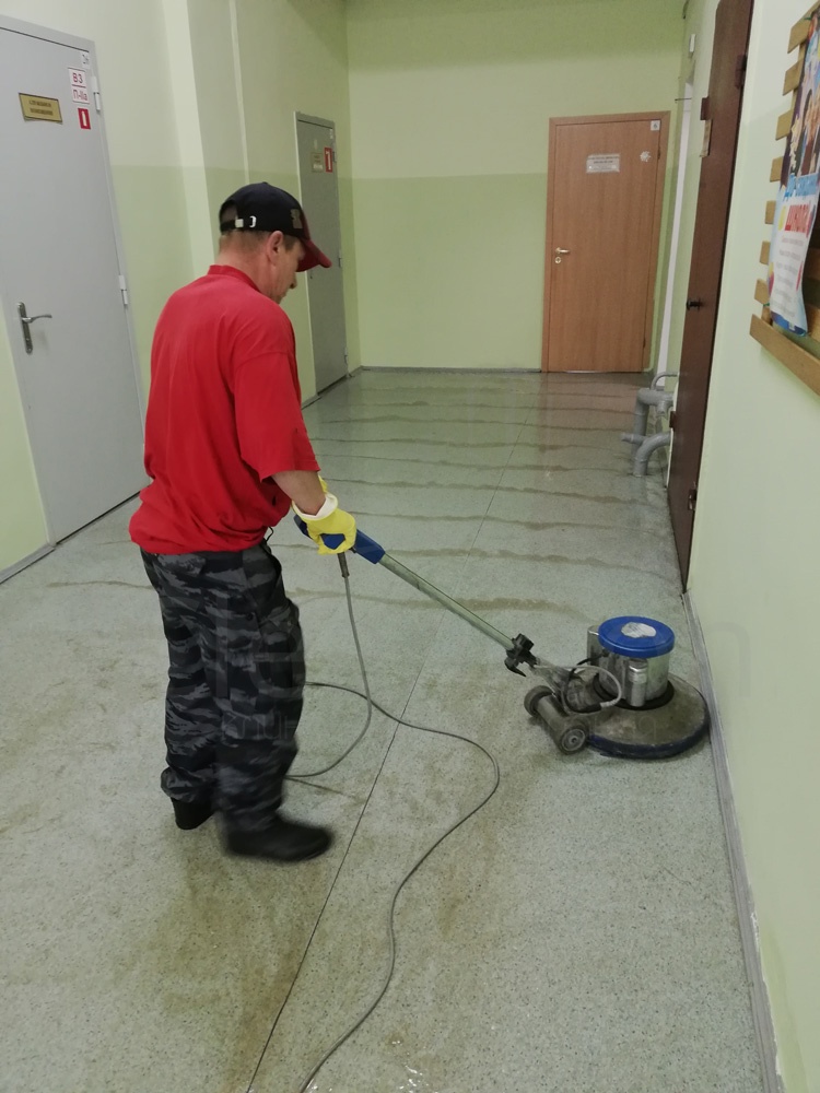 Удаление сложных загрязнений пола с помощью дисковой машины