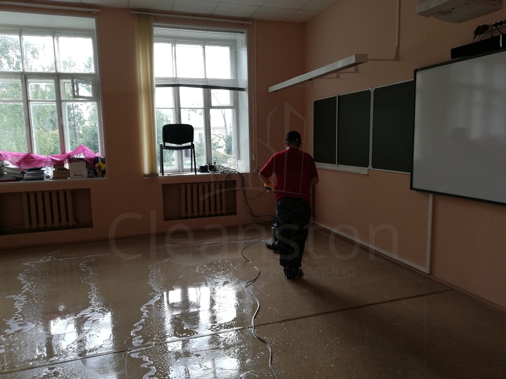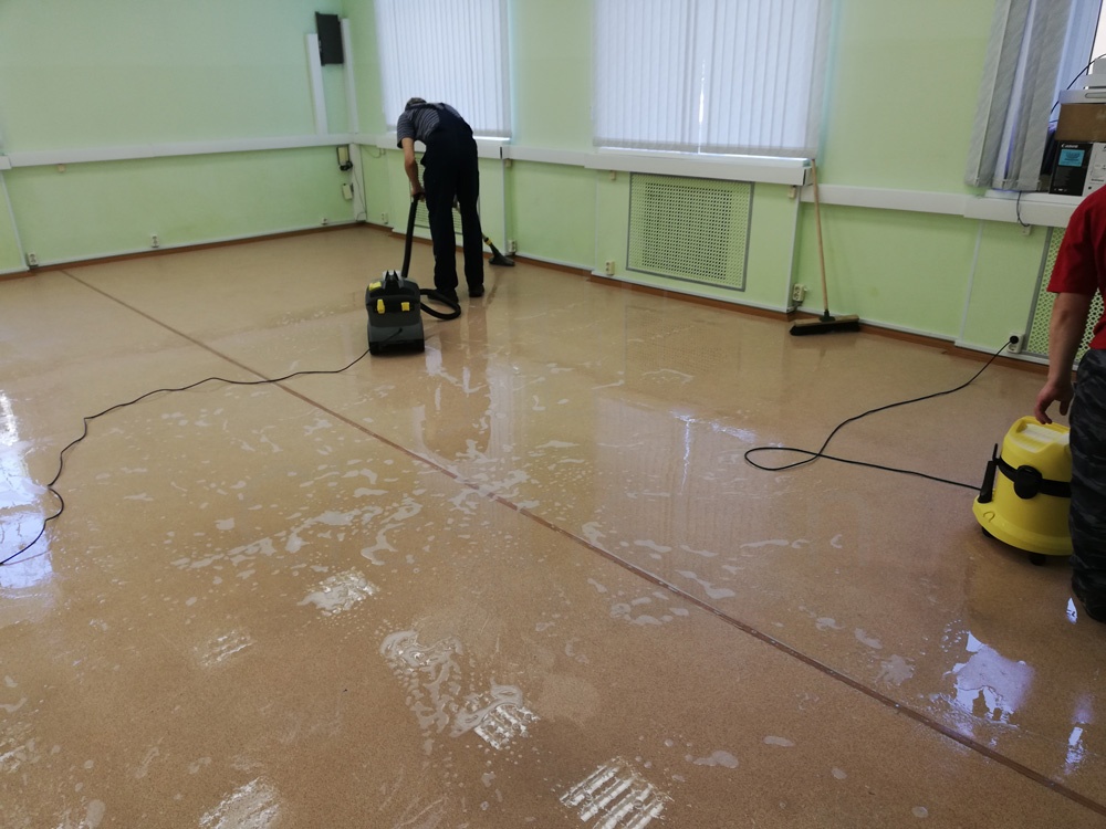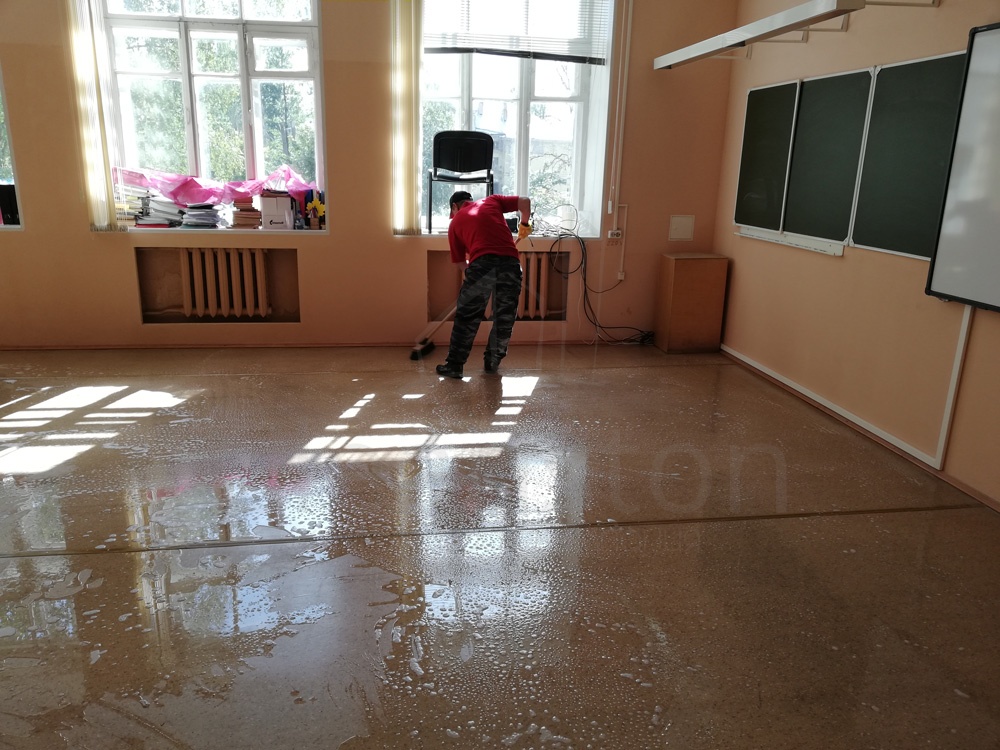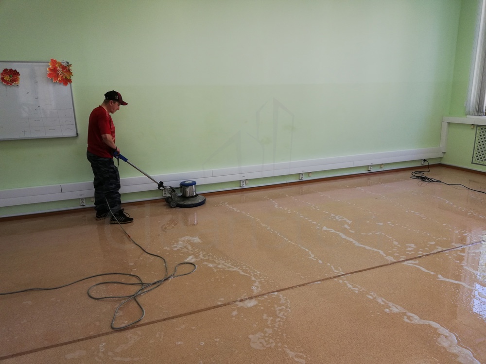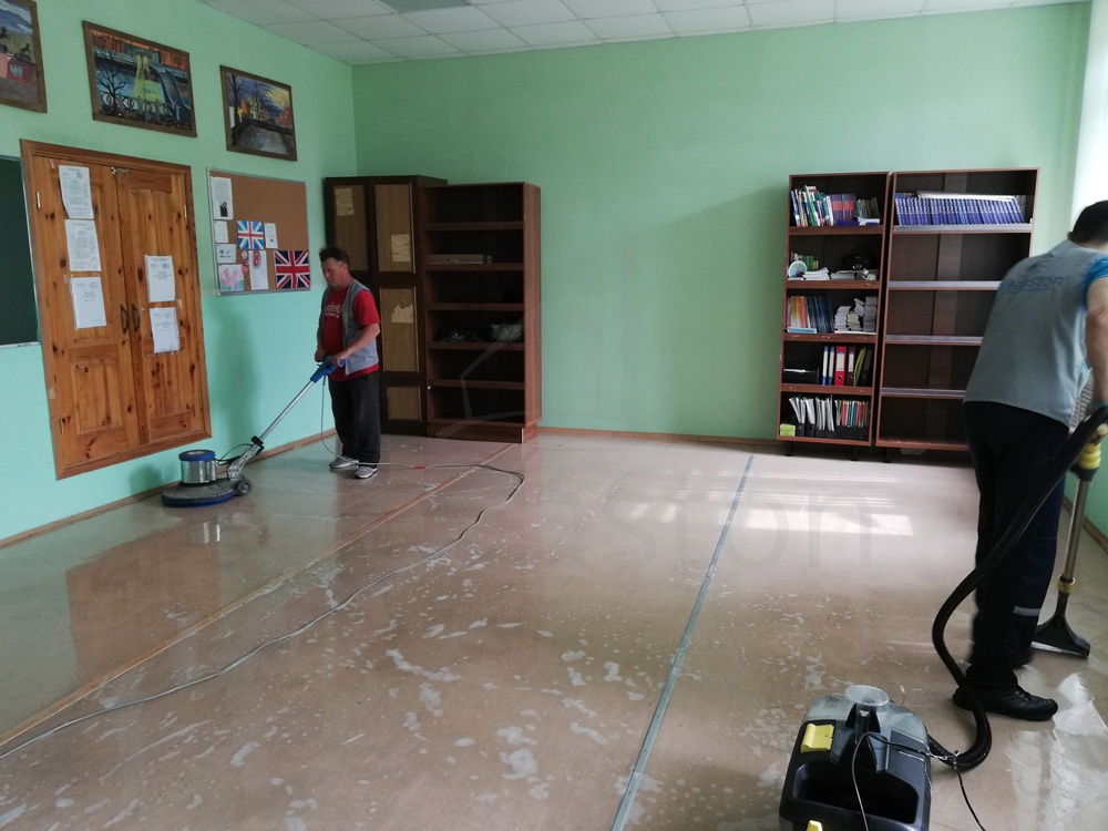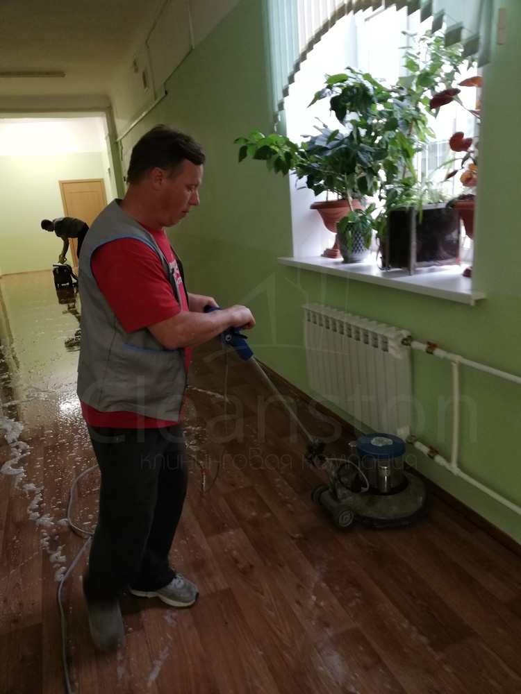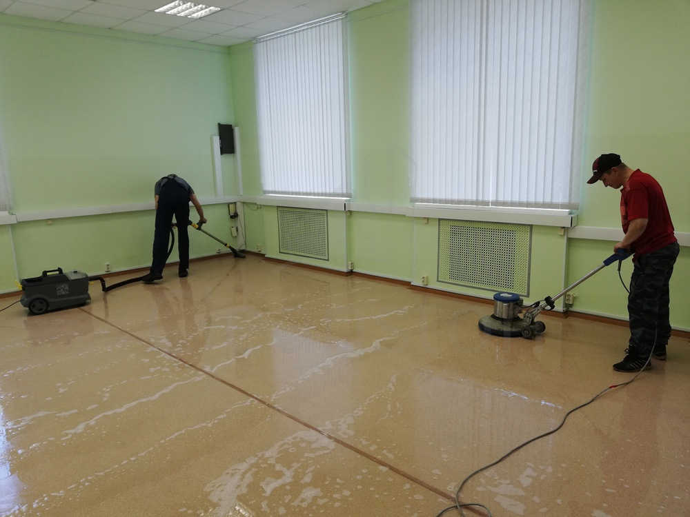 Удаление сложных загрязнений пола с помощью дисковой машины или экстрактора